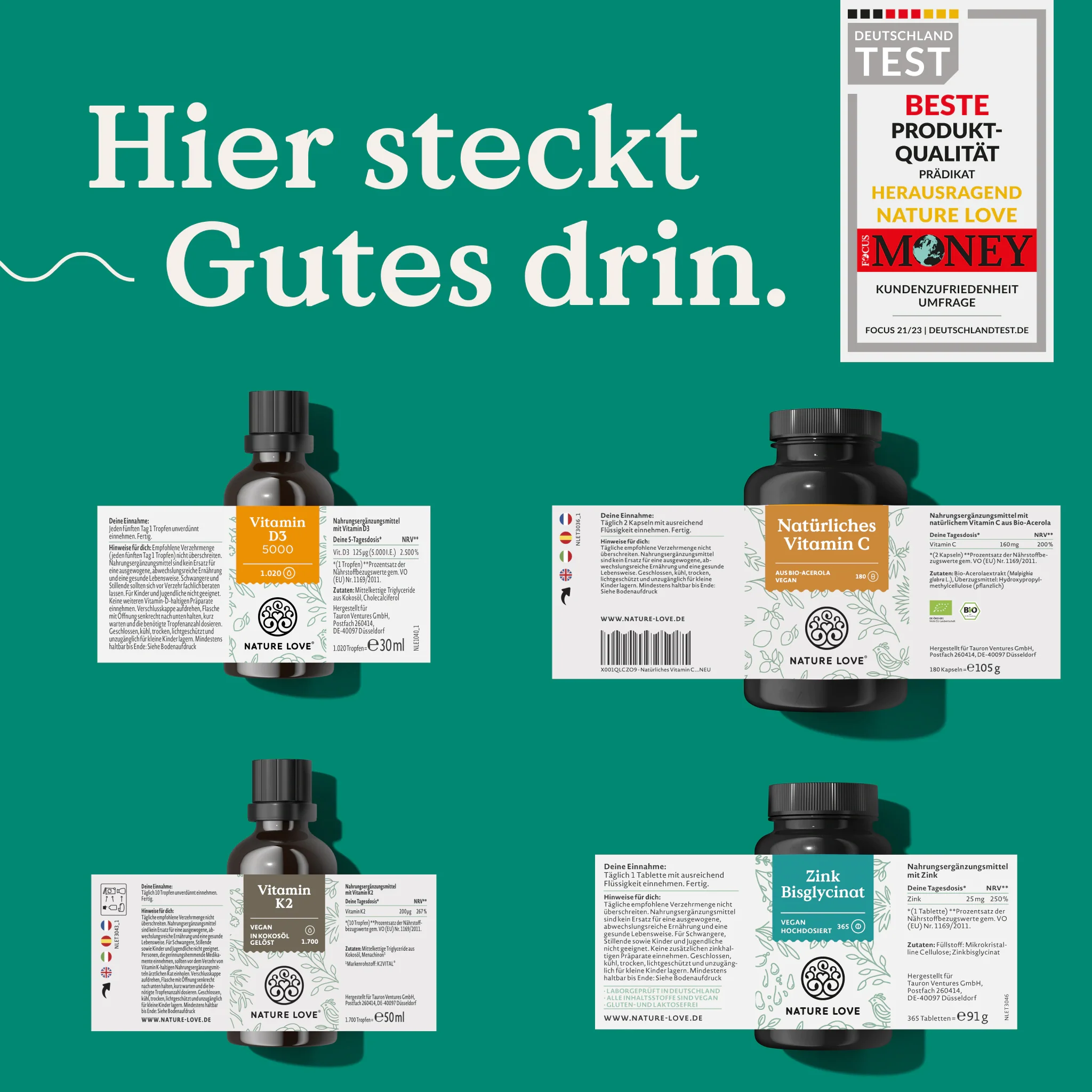 - Hochdosiertes Zink, Vitamin D3 und K2